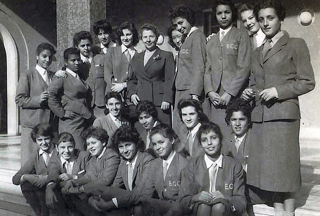 Caption: Egyptian Greek students, including Kalliopi Nyanori in Greek School in Cairo (Photo Courtesy Raseef 22)